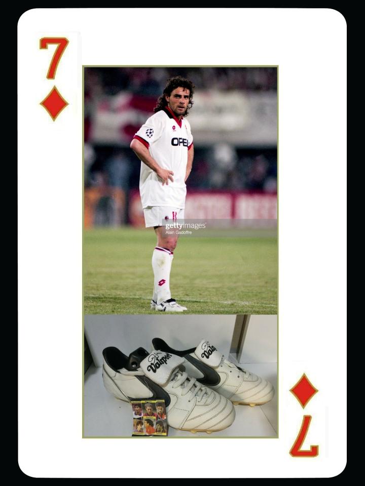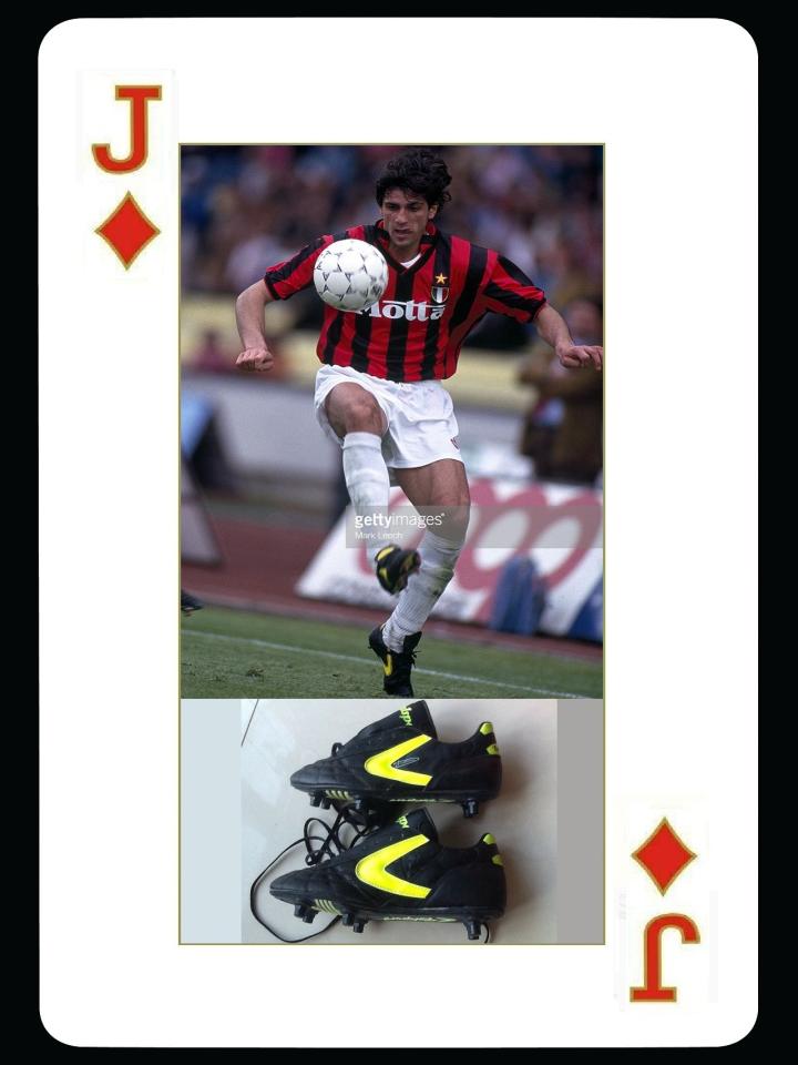 70年代,valsport赞助了尤文图斯俱乐部,球员时期卡佩罗曾经为该品牌代言。此后在足球领域渐渐走强,在意甲小世界杯时期,成为了和diadora,lotto三足鼎立的意大利本土足球运动品牌。可能意甲的老球迷都会记得valsport这个回旋镖标志,特别是在当年实力鼎盛的ac milan,就有不少球员使用这个品牌的足球鞋,不知道大家还有没有印象。其主要原因也是因为当时卡佩罗是米兰的主教练,今天我们就来介绍一下当年米兰王朝使用过valsport球鞋的球星。