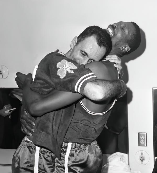 13年11冠的绿军众星云集,拉塞尔和库里、沙曼这对后场组合,以及后来2个琼斯搭档的后场,不过是其中较为突出的而已。1956年选秀,拉塞尔加盟绿军,自此开启了绿军收割冠军的征程。1961和1963年,沙曼和库西相继退役,两个琼斯接过权杖,一直到1967年KC-琼斯退役,1969年萨姆-琼斯退役。他们共同打造了绿军王朝。