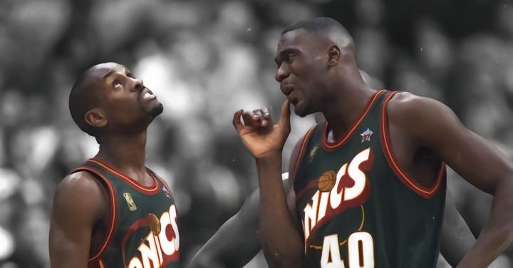 “雨人”和“手套”也未曾夺冠,但他们却是NBA史上观赏性最强的内外线组合之一。1989和1990年,坎普和佩顿相继加盟超音速。佩顿令人击节的妙传,坎普雷霆万钧的扣篮,都令球迷大呼过瘾。1994年首轮遭遇黑八后,1996年二人终率队闯入总决赛,却不敌72胜的公牛。他俩堪称超级控卫和野兽派前锋组合的鼻祖。