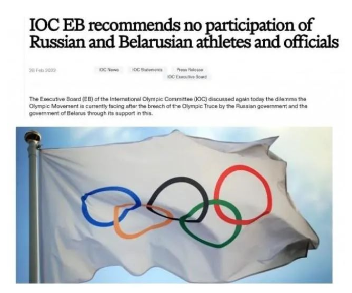 国际奥委会也官宣,确认要对俄罗斯运动员实行全面禁赛,让他们与国际各大赛事说再见。
