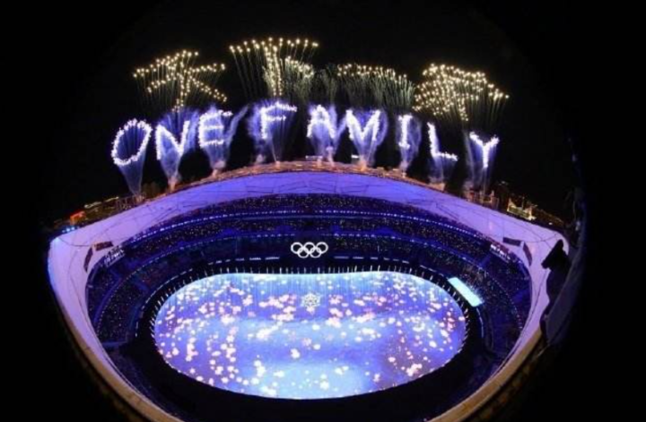 这一幕最好的诠释了奥林匹克新增加的口号——“更团结”,这与闭幕式上空中绽放的烟花“ONE WORLD ONE FAMILY”,“天下一家”表达了同样的想法。