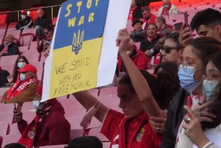 在葡萄牙本菲卡的主场,乌克兰球员雅列姆丘克替补出场时,球迷起立鼓掌为他声援,雅列姆丘克当场泪流满面。球迷打出标语:“停止战争,我们与你同在。”
