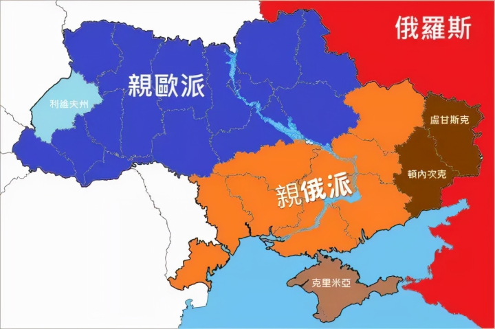 俄罗斯、乌克兰分家后,俄语、乌克兰语使用问题,亲俄还是亲欧的问题一直以来困扰着乌克兰的政界和文化界。乌克兰政坛就是亲俄派和亲欧派斗争的角斗场。尤其是俄罗斯族占绝大多数比例的克里米亚半岛和俄语人口占70%的顿巴斯地区(顿涅茨克、卢甘斯克所在地)更是火药点。