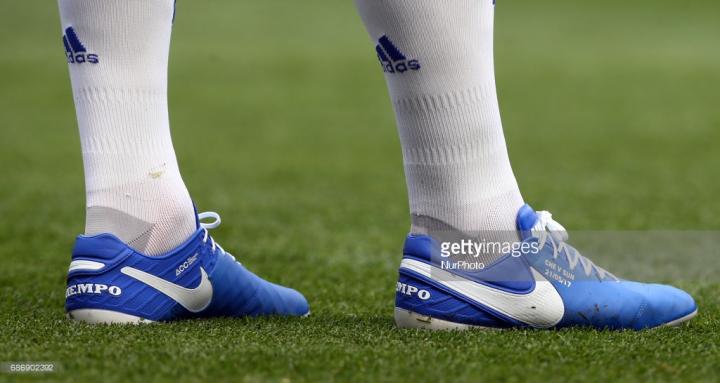 在国际足坛,最早以蓝色作为标签的球队是意大利,也正是因为如此,1994年世界杯,首次出现了蓝色的diadora足球鞋。但是这也是仅仅是意大利本土品牌队自己赞助的国家队的特别献礼,当时蓝色球鞋并不受到球员和品牌商的推崇,不像白色和红色,很早就被adidas和puma的等品牌运用,成为第一批非黑色的主流足球配色。