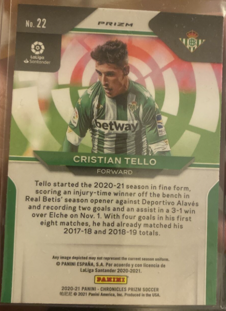 特略 20-21 帕尼尼 编年史 Prizm 西甲 贝蒂斯 金色电源特卡