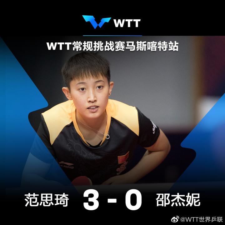WTT常规挑战赛阿曼马斯喀特站:中国三名女将晋级女单四强 体坛万象 体坛万象2022-03-04 23:20在今天结束的WTT常规挑战赛马斯喀特站比赛中,中国三名女将晋级女单四强。具体赛果如下:范思琦3-0邵杰妮(11-6,11-9,11-6)钱天一3-1何卓佳(5-11,11-6,11-9,14-12蒯曼3-0巴特拉(11-9,11-4,11-3)杨晓欣3-1萨马拉(11-5,6-11,11-8,11-8)展开更多