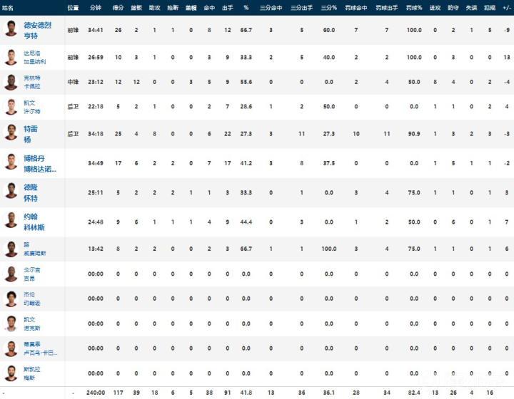 NBA战报:特雷-杨25+8,老鹰117-114险胜奇才,库兹马22+5+11