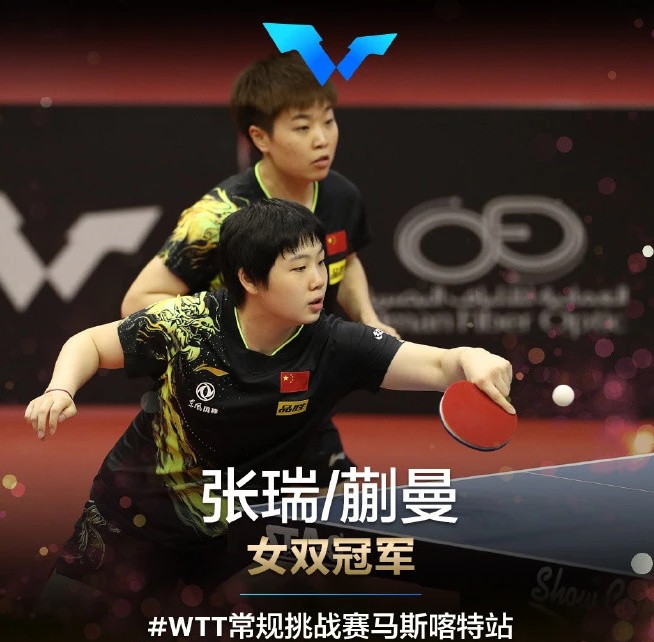 WTT阿曼站女双决赛:中国组合张瑞 /蒯曼夺得冠军! 体坛万象 体坛万象2022-03-05 16:03在刚刚结束的WTT阿曼站女双决赛中,中国组合张瑞 /蒯曼总比分3-1战胜艾希卡-穆克吉/苏提尔塔-穆克吉,夺得冠军!四局比分分别为11-6、8-11、12-10、11-7。展开更多