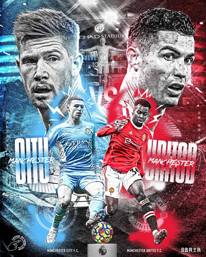 BLUE or RED 留下你的预测!!!原创对...选我主队 @懂球帝2022-03-06 16:43BLUE or RED 留下你的预测!!! 原创对赛海报设计欣赏 -曼城VS曼联 -地点:伊蒂哈德球场 -时间:03/07 00:30 //////////////////////////////////////////// 关注我们的频道@选我主队 欣赏更多足球插画|设计 您的关注是我们更新的动力!展开更多