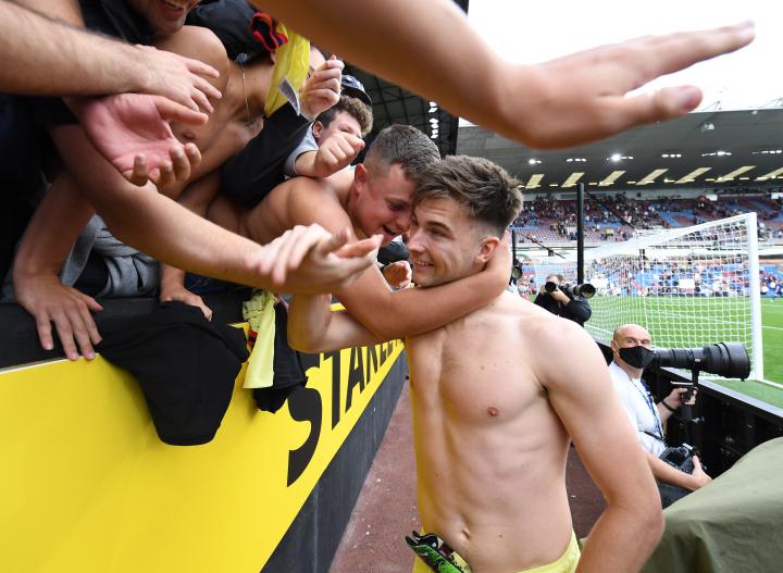“我认识这些死忠球迷,”他解释道,“我和他们一起长大,所以这更多是他们在比赛结束后邀请我过去。然后他们给了我扩音器,给了我围巾,然后我就带领他们唱歌,看到整个体育场都在上下晃动真是疯狂。