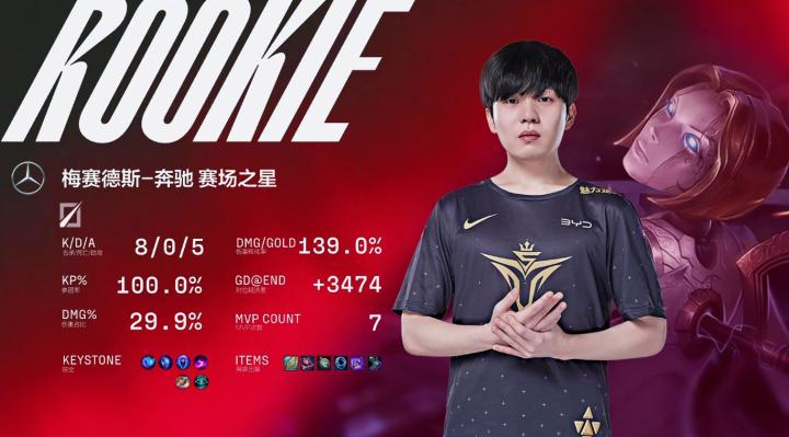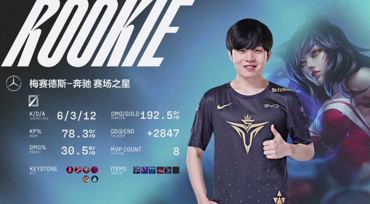 第15分钟,BLG推掉下路二塔,Rookie绕后包夹打出一波0换3。