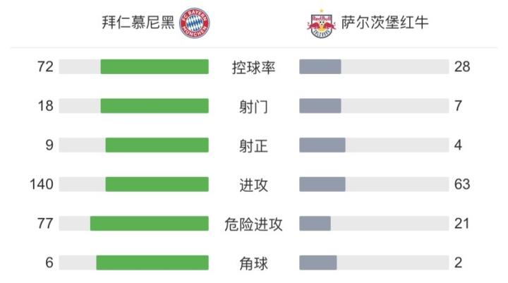 第70分钟,阿伦森横传,凯尔高抽射破门,拜仁5-1萨尔茨堡红牛,总比分6-2领先。