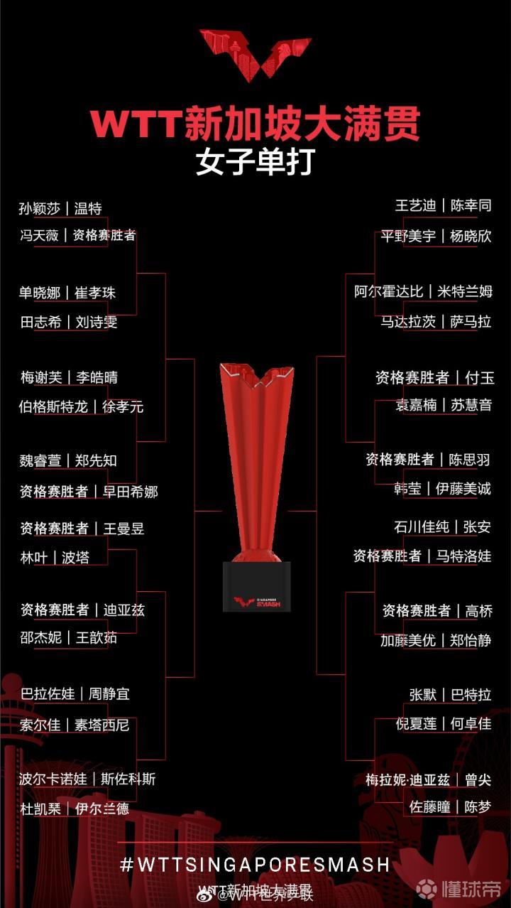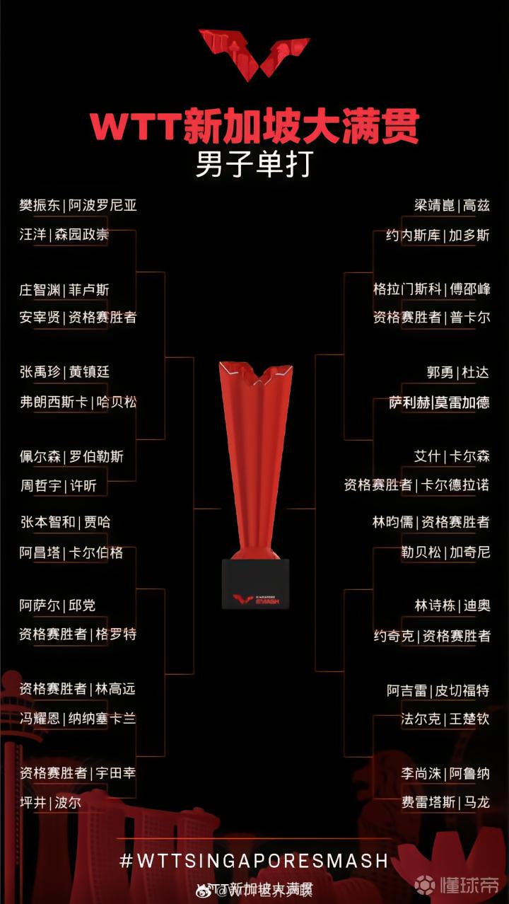 WTT新加坡大满贯赛抽签:国乒众将再出征,孙刘王组死亡半区