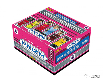 2021-2022英超Prizm Hobby盒与去年是差不多的,一盒有12包,每包有12张卡,一盒共有144张卡。每盒的平均配置则是保证1张签字、4张银折平行、5张带编平行、8张额外平行以及6张插放。每箱12盒,箱货是插入1张彩爆特卡(喷墨特卡),保1张A签,A签则是C罗、贝克汉姆、鲁尼、孙兴慜、凯恩、普利希奇,注意箱货不保喷墨。