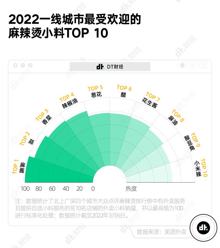 我们统计了北上广深四个城市口碑麻辣烫店的外卖调料销量,发现在选小料这件事上,无论南北方,都热衷于东北麻辣烫的最佳伴侣——麻酱。
