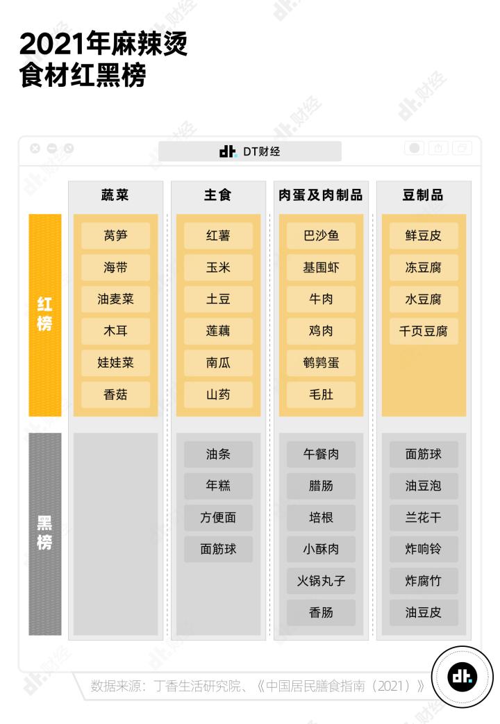 DT君根据丁香生活研究所发布的麻辣烫相关研究和《中国居民膳食指南》,整理出了一份麻辣烫食材红黑榜,如果想要吃得健康,不妨参考一下这份榜单。