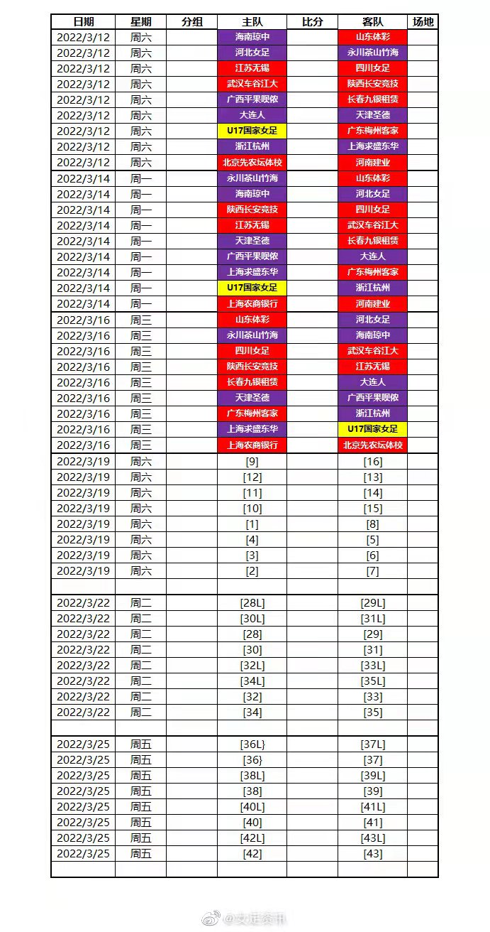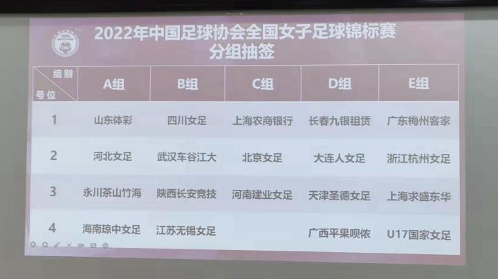 A组:山东体彩、河北女足、重庆永州茶山竹海、海南琼中女足