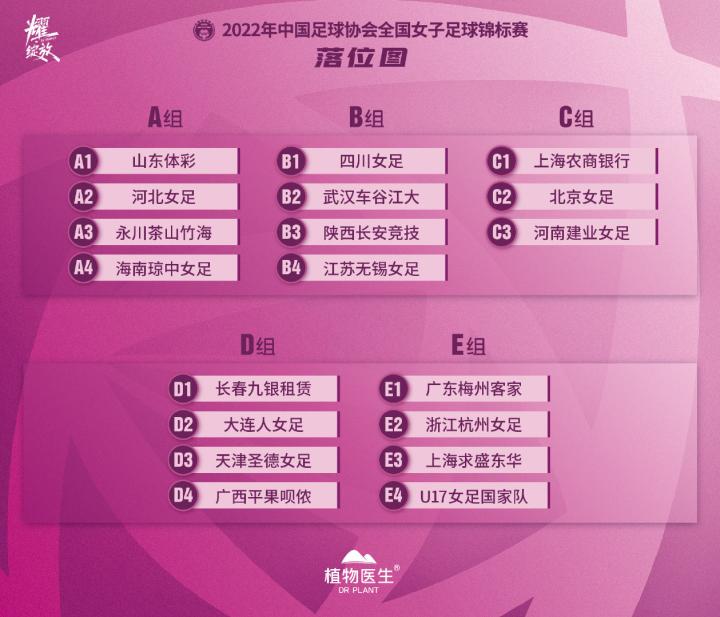 E组:广东梅州客家、浙江杭州女足、上海求盛东华、U17国家女足