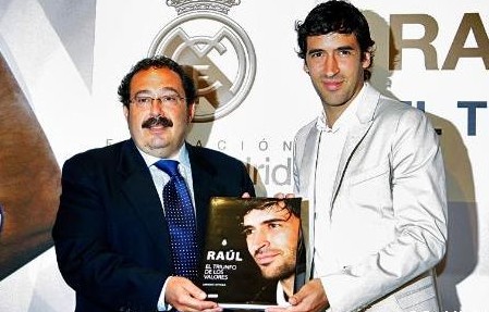 时间回到2010年6月1日,在伯纳乌,劳尔端坐在自己的新书发布会上,介绍着自传《劳尔,价值的成功》。在他的左手边是皇马主席弗洛伦蒂诺,主席的另一边则坐着名誉主席迪·斯蒂法诺。当皇马队长侃侃而谈时,一旁的名誉主席用一种坚定的眼神凝视着这位十几年来的马德里旗帜,发布会进入到签售环节,起身离座的劳尔走向了最左边的迪·斯蒂法诺,一手搭着老人的肩膀,一手紧握他的右手,满脸诚挚地说着什么,这是两代“金箭头”的交替,这是伯纳乌旗帜的传承。荣耀如你,冈萨雷斯。之后,弗洛伦蒂诺亲手将队长卖去了沙尔克。