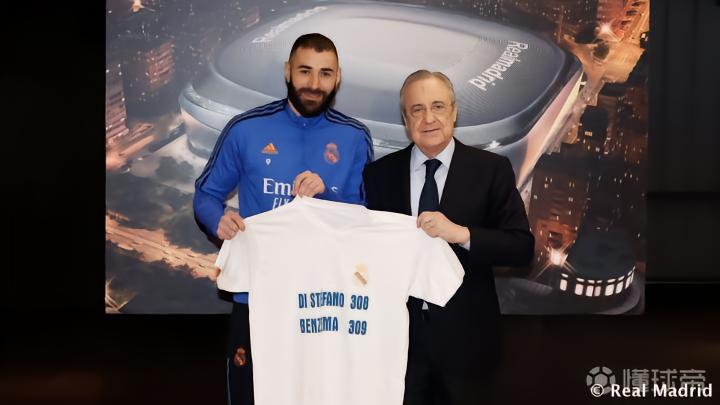 在对阵巴黎的比赛中,本泽马上演了帽子戏法,他皇马生涯的进球数达到309球,超越了迪斯蒂法诺的308球,成为了皇马第三射手,仅次于劳尔和C罗。