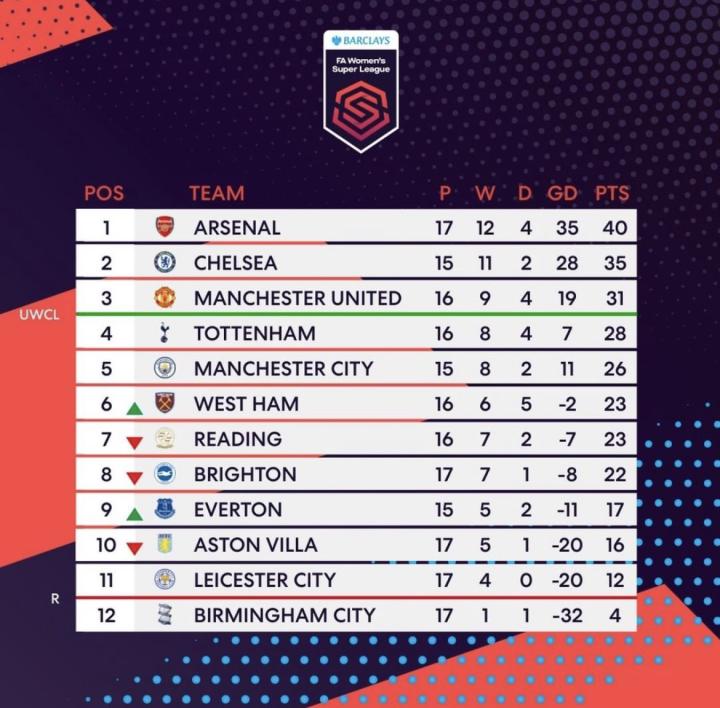 本轮过后,热刺女足继续排名联赛第四,而曼城女足则少赛一场落后曼联女足5分排名第五,联赛前三的争夺依然焦灼。