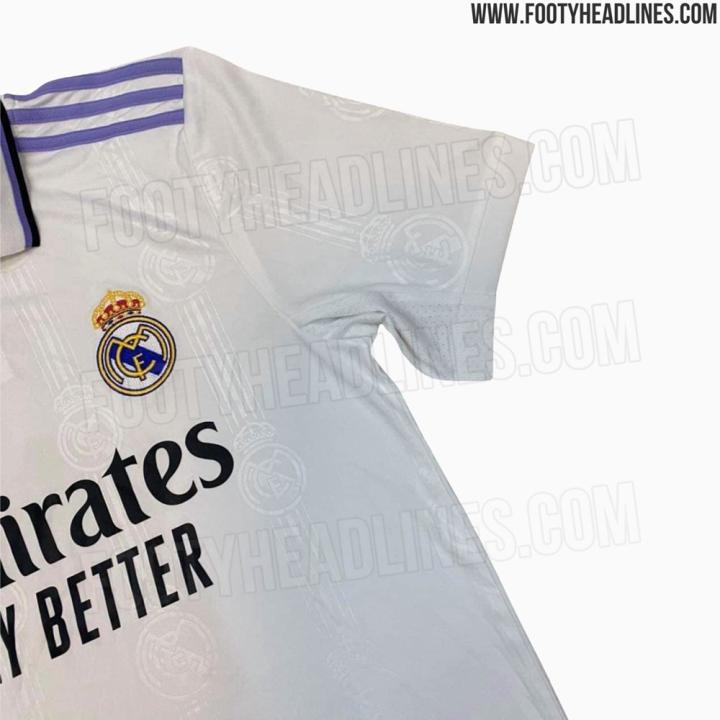 ENJOYZ足球FOOTYHEADLINSE曝光了阿迪达斯为西甲皇家马德里足球俱乐部打造的2022/23赛季主场球衣的实物谍照。新球衣采用了经典的设计与色彩搭配。