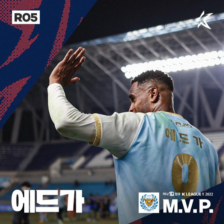 本周,2022赛季的K1联赛第五轮最佳业已出炉。凭借上一场的出色发挥,大邱FC的巴西前锋埃德加获得当轮MVP。除此之外,进球的拉马斯和中卫郑泰昱也入选了最佳阵容。本赛季3-1大胜城南FC的比赛,也是大邱FC赛季主场的第二场胜利,其余8名球员分别来自济州、蔚山、仁川和水原FC四家俱乐部,而这四支球队也是本轮赢球的球队。