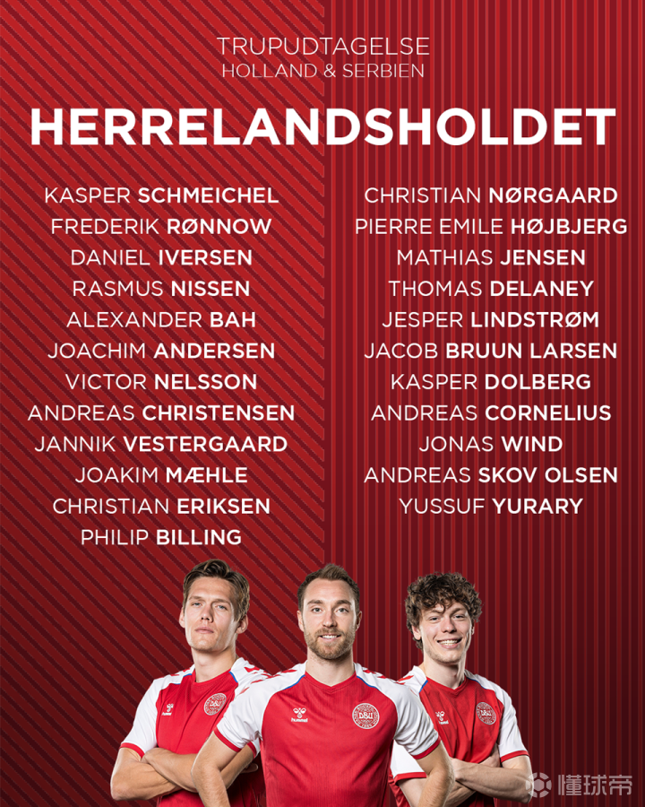 【爱神回归!丹麦男足集训名单:埃里克森时隔9个月重返国家队】