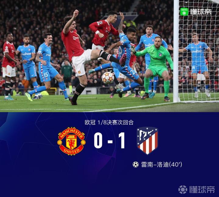 【马竞客场1-0曼联,总比分2-1晋级八强,雷南-洛迪头球制胜】