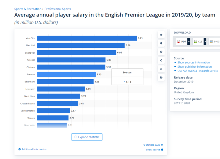 横向看看足球产业最为发达的英格兰和英超联赛,2020年英格兰年人均收入中位数是31487英镑,而英超中下游球队南安普顿2019/20赛季的球员平均工资大约是220万英镑,这中间是70倍的差额。