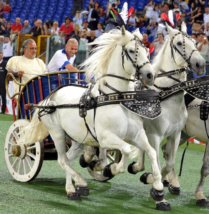 齐达内与托蒂骑战马而入 这是什么神仙对决?