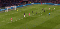 在马竞这里,他们中后场的最弱点就是科克,腿短、个子矮、速度慢。打爆这一点,就能迫使埃雷拉和边中卫前来支援,这样一来,禁区弧前、肋部都会出现空当,如果其他队友随之前来支援,就可以顺势打他们原有位置的空当,以此类推。