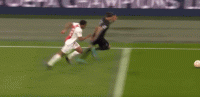注意观察,廷贝尔本来是占据身位优势的,被身后的努涅斯一顶,立刻失去对球路的控制,从而变成阿贾克斯一帮人在70多米的往返里消耗宝贵体能的结果。