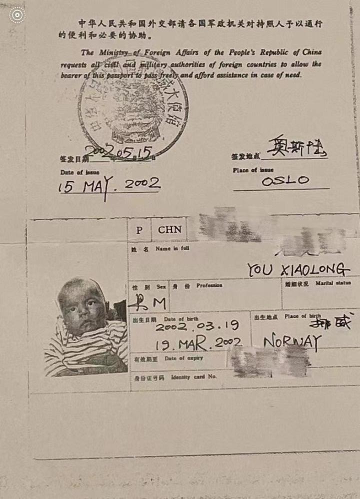 2002年尤小龙出生,母亲带他到奥斯陆中国大使馆办理了护照,以便未来到中国定居生活。说起来为何让儿子使用中文名,而不是挪威名,小龙妈妈也道出了一段过往。“尤小龙这个名字,原本是我父母年轻的时候计划给儿子起的,但是最后他们只生了两个女儿,所以在小龙姥爷的拍板下,就用了这个名字。”