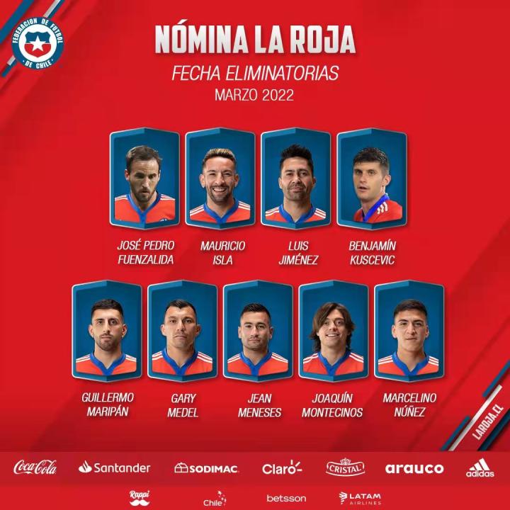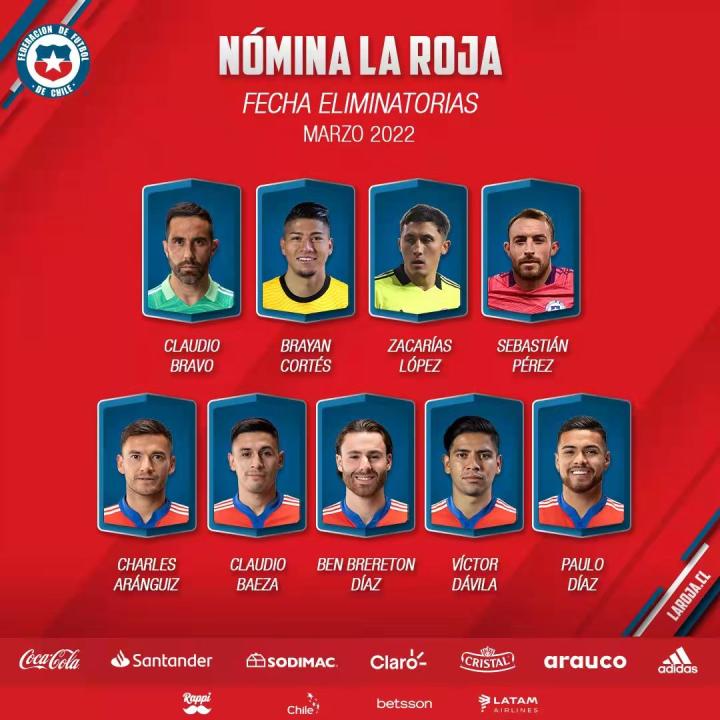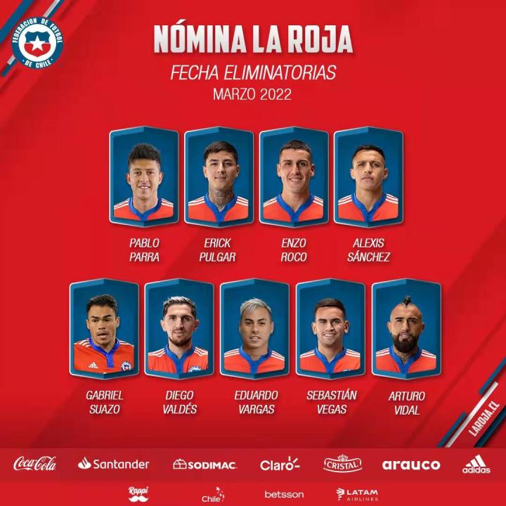 北京时间3月15日,智利国家队公布了新一期大名单:桑切斯领衔,比达尔,布里尔顿在列。智利将在北京时间3月25日以及3月30日对阵巴西和乌拉圭。