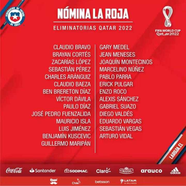 智利国家队新一期名单:桑切斯领衔,比达尔,布里尔顿在列