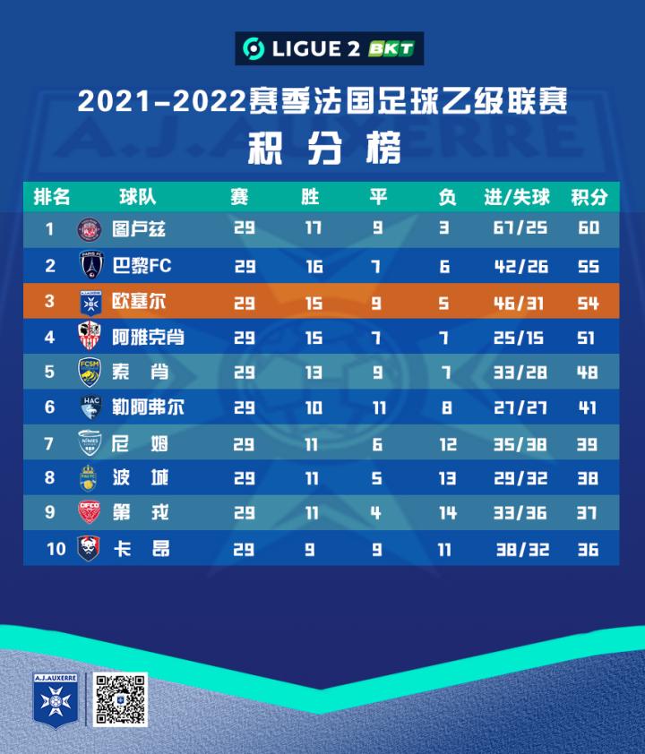 在赢得这场比赛后,欧塞尔与联赛第二名巴黎FC的距离缩小至1分,这意味着球队与直接升级区只有一步之遥。