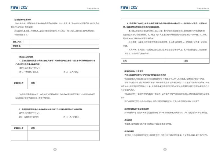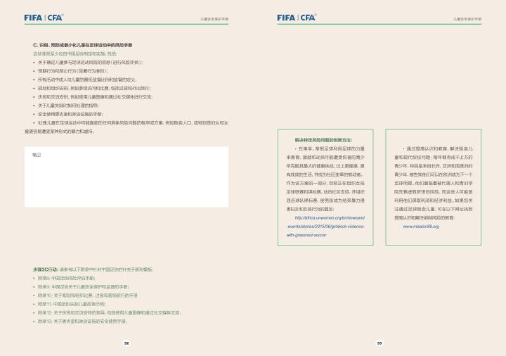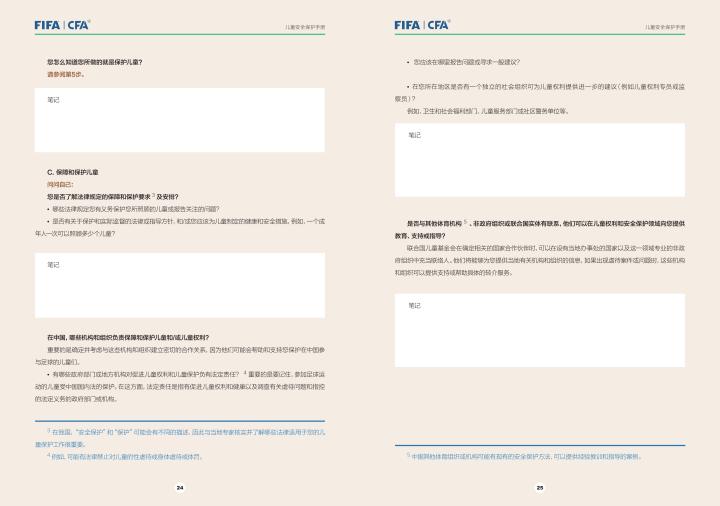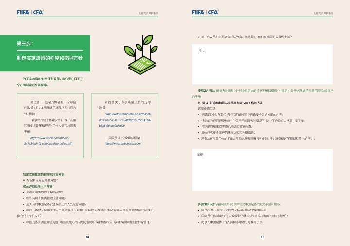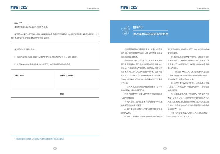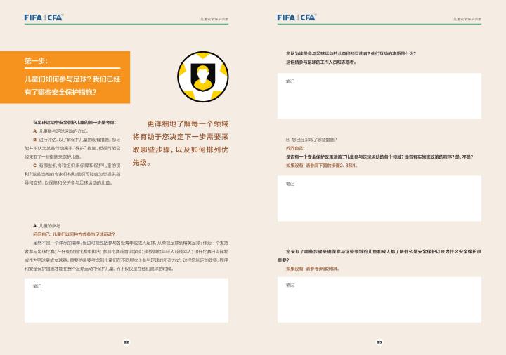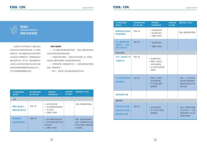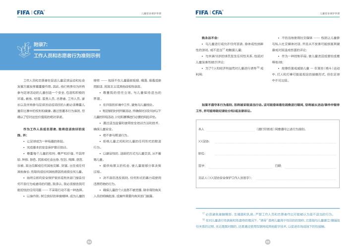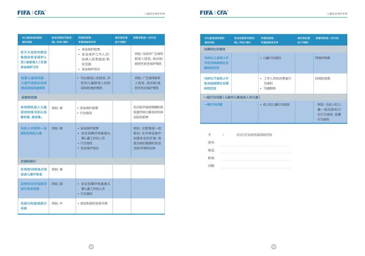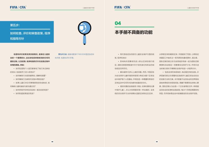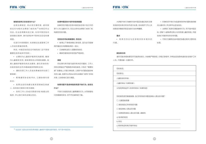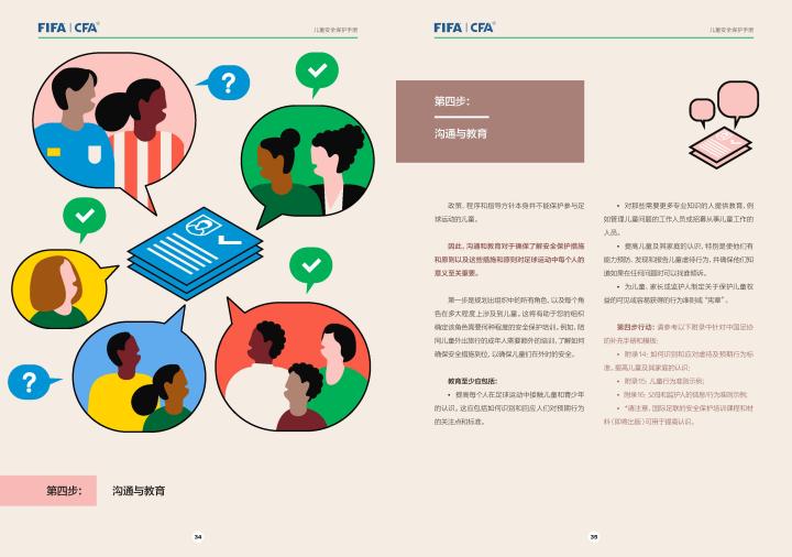 国际足联自2020年起成立了儿童安全保护部门(FIFA Safe Guarding),旨在推广足球活动中的青少年儿童安全保护工作,确保青少年儿童在健康良好的足球环境中学习和成长,免受足球训练中来自外界的身心伤害,并为此开设了相关课程。中国足协社会足球部根据国际足联发布的《儿童安全保护指南》编译制作了《中国足球协会儿童安全保护指南》和相关宣传页,并将在后续响应国际足联号召,成立中国足协儿童安全保护小组。