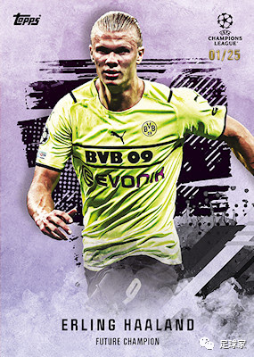 Future Champion(未来之星)共44人名单,也相当于是芒特盒的Base。该卡的宣传图如上图所示,选图和设计非常不错,也看得出Topps对此系列在色彩上运用的独到之处。未来之星特卡的球员名单十分丰富,所包含的球员也是大家耳熟能详的几位,主要Hit有:加维(RC)、佩德里、法蒂、维尼修斯、托纳利、穆夏拉、哈兰德、姆巴佩、卡马文加、德卡特莱尔、索博斯洛伊、安东尼等。由于主题是未来之星(芒特盒里也有阿芳哦),因此梅西、C罗等球员并不会出现在此版卡中。