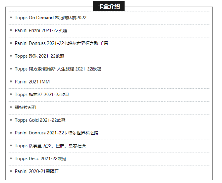 此款盒子主要涵盖了芒特与他切尔西俱乐部和英格兰国家队队友的精彩时刻,除此之外还有大量未来冠军特卡,其中包含的都是U23的球员。主打妖人,是这款盒子目前最大的特色。这款盒子对于喜欢年轻小妖以及芒特人迷、切尔西球迷来说是非常值得的,不过该盒子不包含梅罗等超巨球员也确实是一大遗憾。