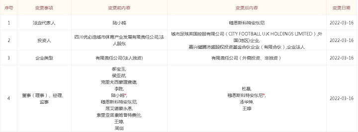 据北京市企业信用信息网消息,四川九牛足球俱乐部已...小牛体育微报 @懂球帝2022-03-18 09:37据北京市企业信用信息网消息,四川九牛足球俱乐部已经在3月16日完成其100%控股股东北京映像汇文化创意有限公司的股权变更。变更后,深圳优必选彻底退出,城市集团和健腾基金分别持股47%和53%,四川九牛从法理上全面进入城市集团时代。展开更多