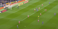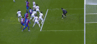 (图)对阵马竞和西班牙人,巴萨的传中打法已经非常娴熟。边路球员的传中路径很多,中场球员的插上也非常到位。
