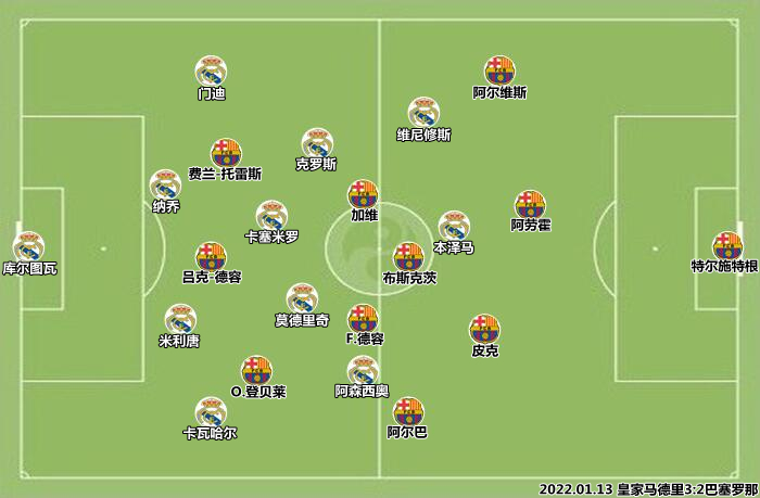 就在巴萨找回胜利节奏的同时,皇马也从岁末年初的低谷期走出,抖擞精神进入双线冲刺之旅。主场大胜皇家社会一役(2022.03.06),很可能将成为皇马赛季的转折点。此战之前,皇马一度遭遇进球荒,国王杯出局后又被比利亚雷亚尔零封,此战后的三场比赛,皇马打进10球,安切洛蒂找到了启动压迫式打法的按钮。