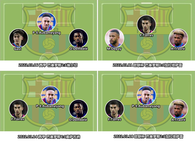 近期,哈维在联赛中尝试了不同类型的锋线配置,奥巴梅扬、阿达玛-特劳雷和费兰-托雷斯或许是风格契合度最高的组合。除了采用不同的三叉戟组合来制造变化,哈维还鼓励中场球员逼近禁区,此举既能丰富阵地进攻层次,还便于就地反抢,拿下第二落点后也能快速组织进攻,这些都是有别于传统打法的新气象。