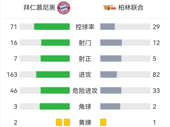 拜仁慕尼黑首发:1-诺伊尔、44-斯塔尼希奇、23-夸西、2-于帕梅卡诺、21-卢卡斯-埃尔南德斯、6-基米希(74'24-托利索)、42-穆夏拉(61'18-萨比策)、25-托马斯-穆勒(74'13-舒波-莫廷)、10-萨内(74'22-马克-罗卡)、11-金斯利-科曼(67'7-格纳布里)、9-莱万多夫斯基