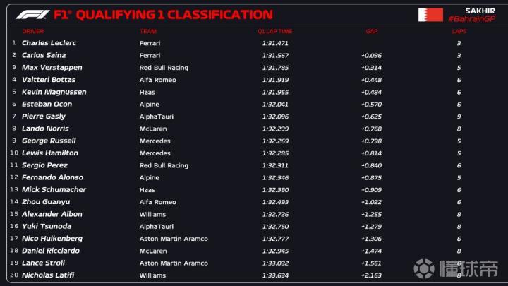 F1巴林站排位赛:周冠宇首秀将在正赛第15发车,勒克莱尔杆位
