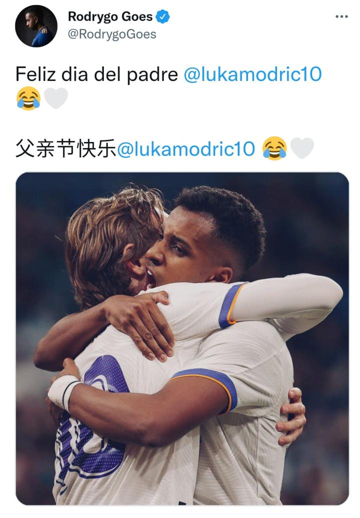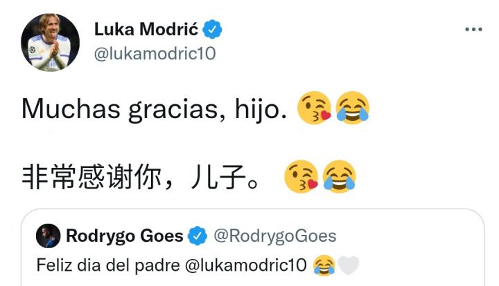 3月19日是欧洲某些国家的父亲节罗德里戈祝贺莫德...莫得法巴掌 @懂球帝2022-03-20 09:373月19日是欧洲某些国家的父亲节 罗德里戈祝贺莫德里奇:父亲节快乐! 莫德里奇回应:非常感谢你,儿子。展开更多