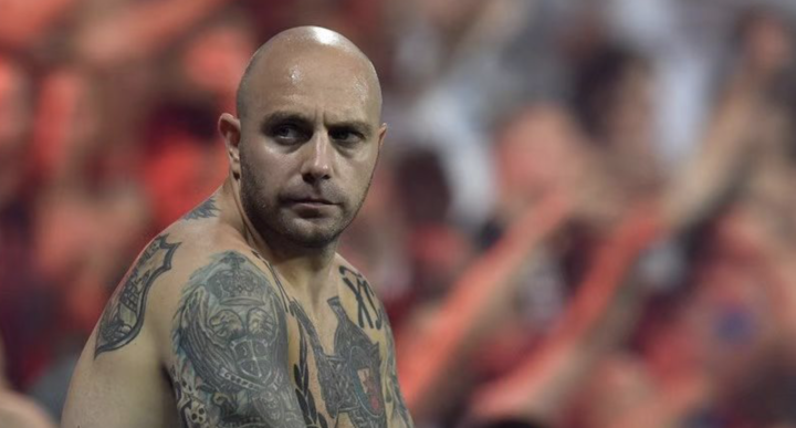 这位德里耶球迷领袖之一,有一张右手高举行纳粹礼的图片,臭名远扬。他的偶像正是阿尔坎。
