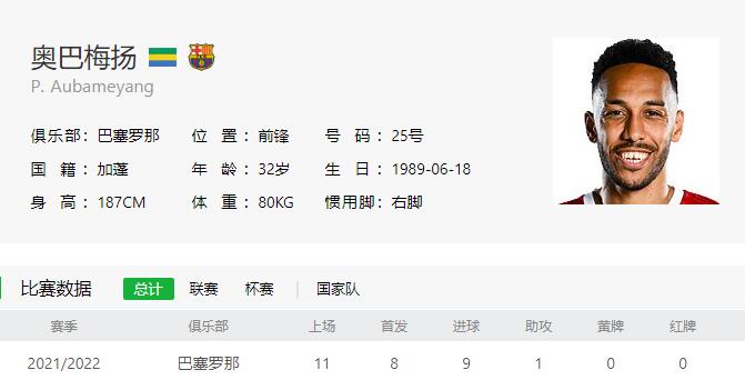 翻看奥巴梅扬本赛季的数据,加蓬人在代表枪手出场的13场比赛中打入7球,但在代表巴萨出场的11场比赛中已经打入9球。而在上赛季,这位加蓬球星在38场比赛中也仅仅打入14球。相比较如今在巴萨的高光,两者简直天差地别。