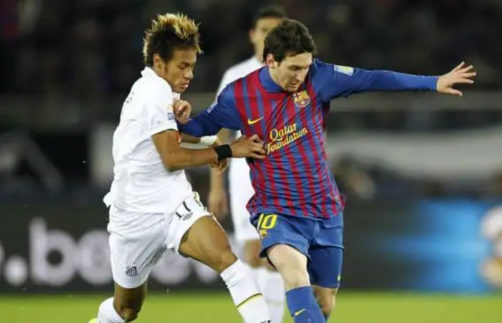 2011年12月18日,横滨国际综合竞技场,内马尔与梅西直接对话,由他领军的桑托斯对阵群星璀璨的巴塞罗那。